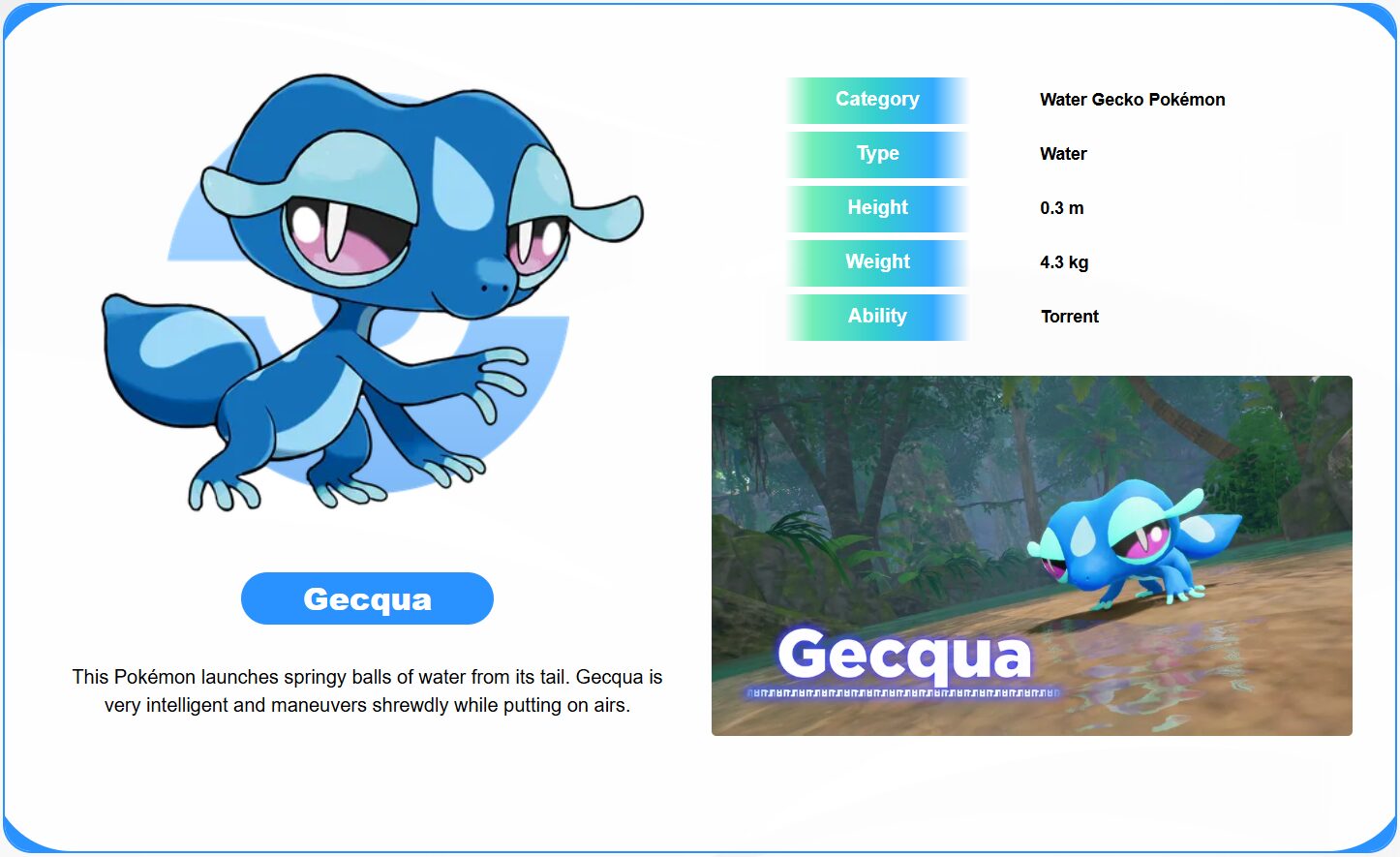 With the former being the most interesting. You’ve got Browt, a grass type owl Pokémon , Pombon, a fire type dog Pokémon and Gecqua, a water type gecko Pokémon with all the cuteness you’d expect. Ability wise they share the same abilities as their previous generation counterparts (Overgrow, Blaze and Torrent respectively), but hey, their stats and final evolutions are yet to be seen. Perhaps they’ll shake things up there instead.